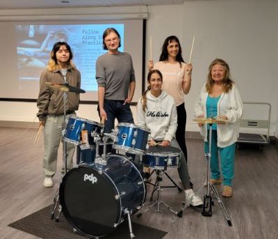 The idea of Drumming Basics is an extension of our love for making music here at the library. After adding guitars into our Library of Things collection, we wondered what else we could do to keep the music at the library going. And the idea of Battle of the Bands, Drumming Basics and Drumming Open Jams was born! We want to continue sharing the beautiful gift of music-making with our community in as many ways as possible. Drumming Basics Part 3 was the culmination of everything we had learned this year. We jammed to some of our favorite tunes from Queen and The Beatles, and it was rewarding for me to witness everyone’s progress.