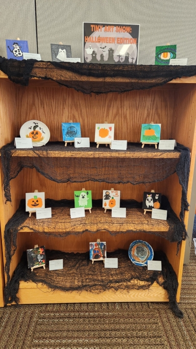 Randall Oaks Library started the spooky season of October off with our Tiny Art Show: Halloween Edition last night on Wednesday, October 2.. Come check out the beautiful artworks that will be displayed in the Randall Oaks Library until November 1st.