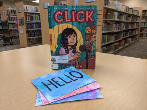 Our graphic novel for October is Click by Kayla Miller, followed by a Paper Marbling inspired craft. Copies will be available at the Youth Services Reference Desk starting in September.
