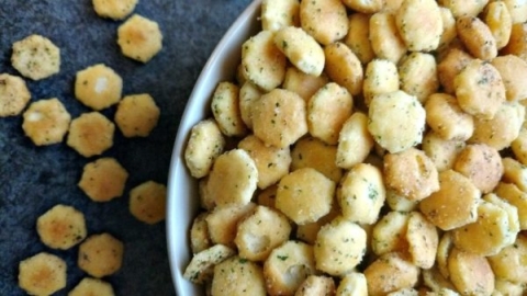 Last month we spent all our time making the pumpkin spice latte balls, so we put the seasoned ranch oyster crackers off until this month. This is a fun and easy way to make a salty snack.