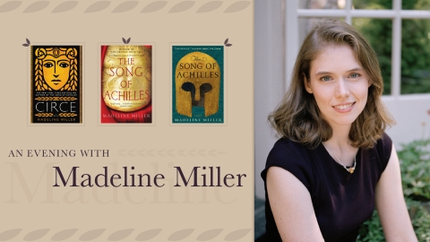 Join us for an evening with Madeline Miller, one of the leaders in Greek retellings, New York Times bestselling author, Orange Prize for Fiction winner, to discuss her works, Song of Achilles and Circe.