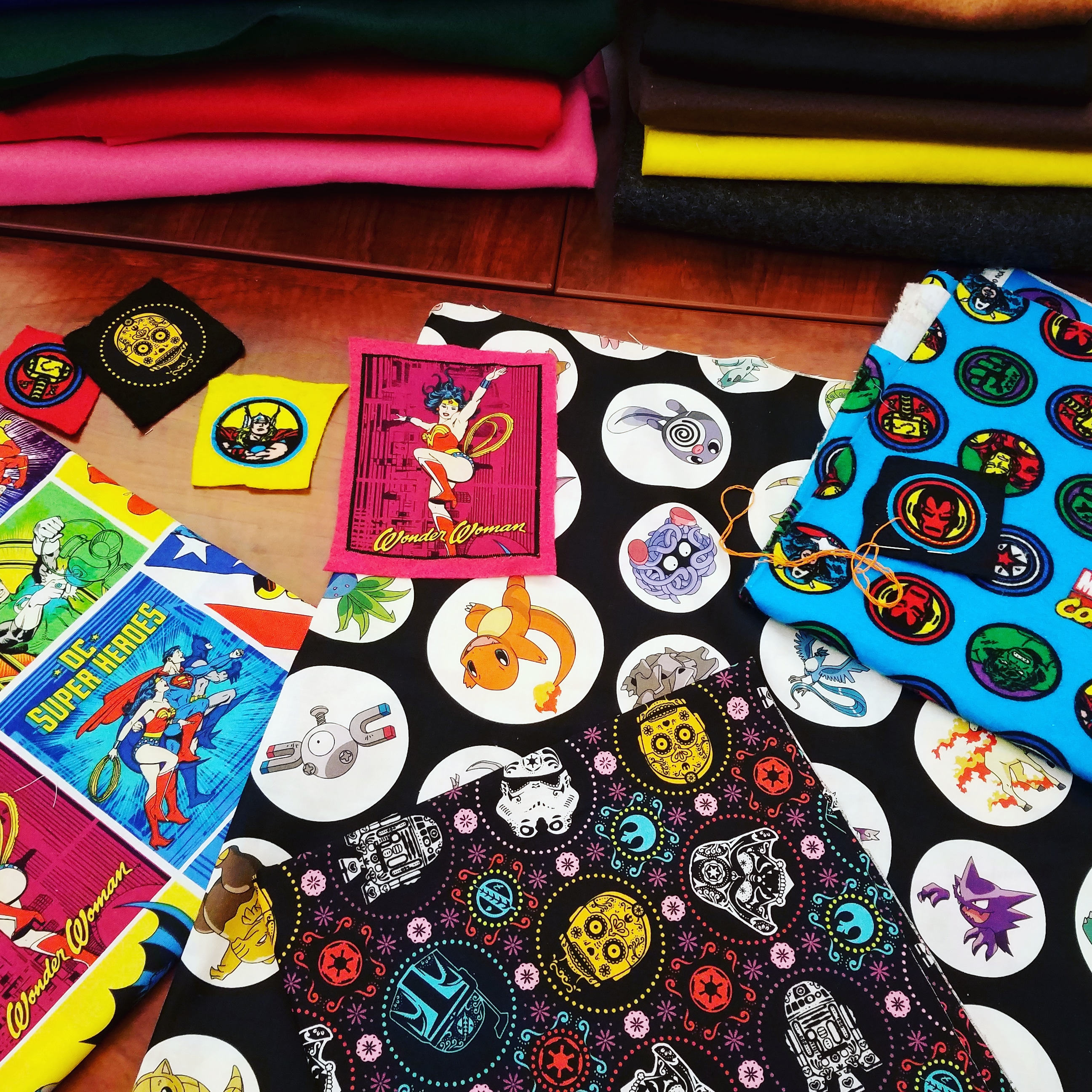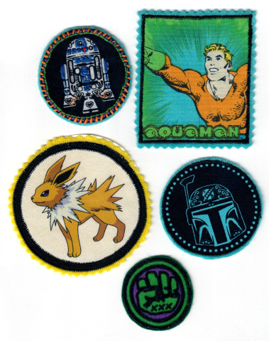 Starting at 1:30, use pre-printed character cloth , fusible iron on webbing and light embroidery techniques to create a custom character patch that you can add to your favorite bag or jacket. We have four themes to choose from: Marvel, D.C., Pokemon and Star Wars.