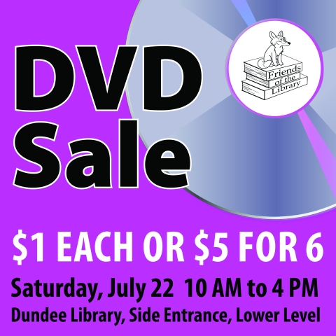 The Friends of the Library will hold a special DVD sale at the Dundee Library on Saturday, July 22 from 10 a.m. to 4 p.m. Choose from hundreds of DVDs available for purchase for $1 each or five for $6. Find the sale at the Dundee Library's side entrance at 555 Barrington Ave. (Rt. 68) in East Dundee.
