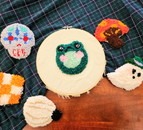 Create your own mini rug coaster! Choose from four fall inspired designs and learn how to hand tuft using a punch needle. Supplies will be provided.