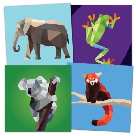 Computer style 3-D images made out of polygon shapes. Kids will use removable color stickers to create vibrant works of art. Grades K-6.