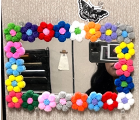 Make your own groovy mirrors. Make different designs using fluffy pom poms to design your own mirror.