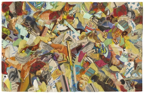Create a masterpiece collage with different techniques and materials.
