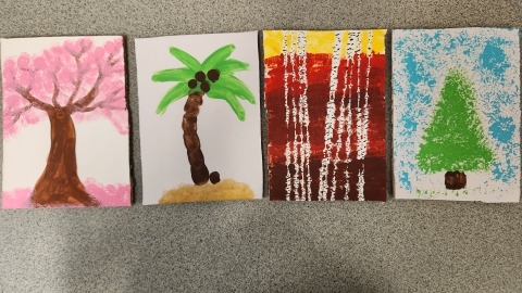 Paint a tree for every season using different techniques. Grades K-6