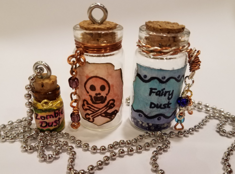 Capture something whimsical in a miniature glass bottle and label it creatively. Turn the bottle into a pendant and attach it to a necklace or keychain.