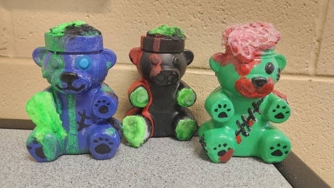 Turn a cute plastic teddy into a cute creepy zombie. Grades 4-8