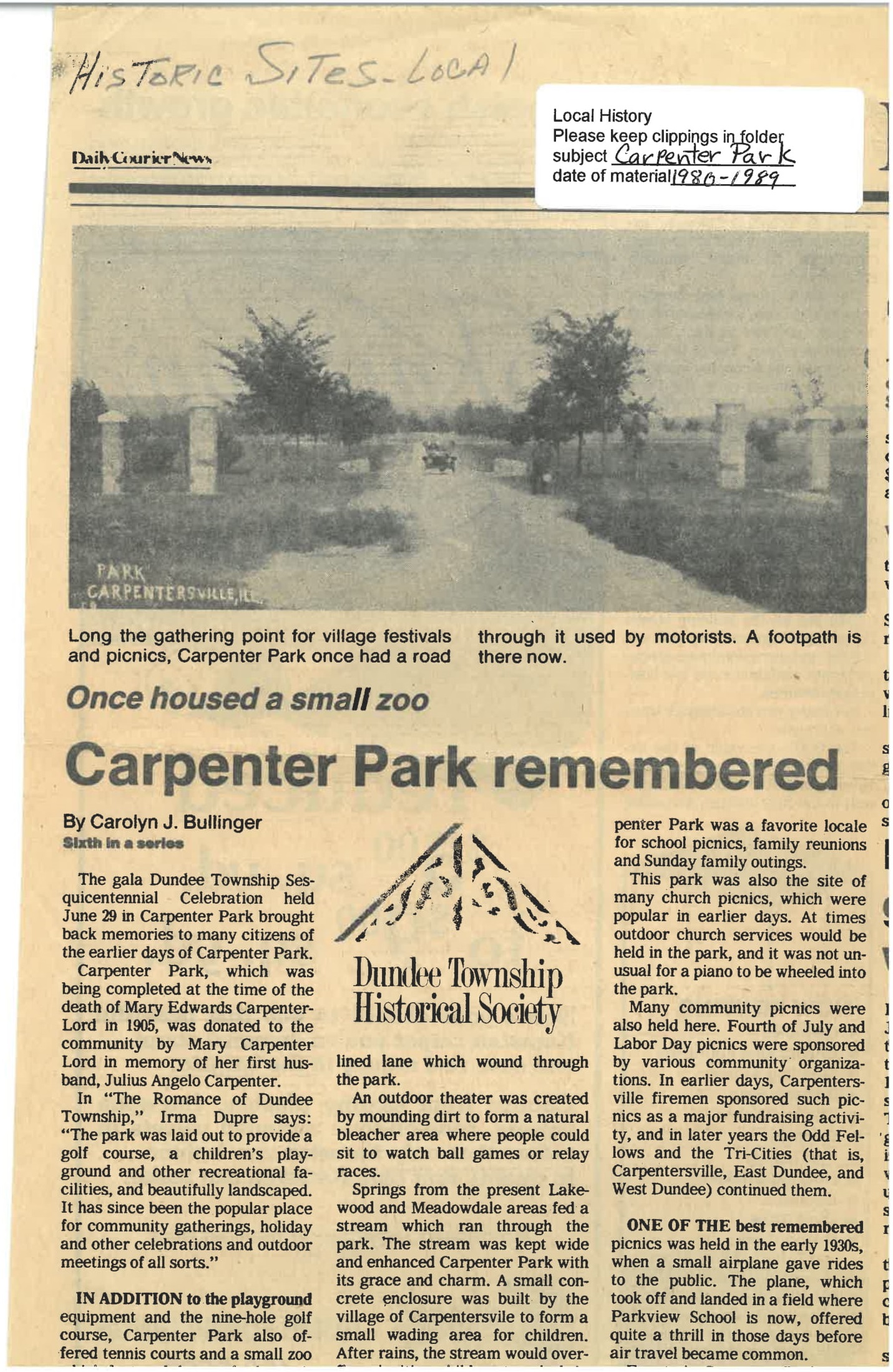 - “Carpenter Park Remembered” article, Courier News, July 19, 1985