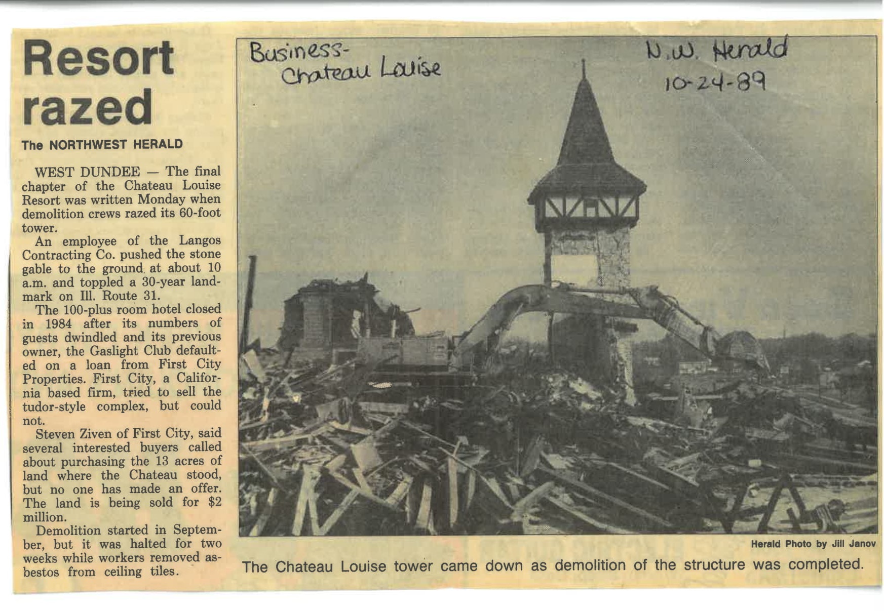 “Resort Razed” article, Northwest Herald, October 24, 1989
