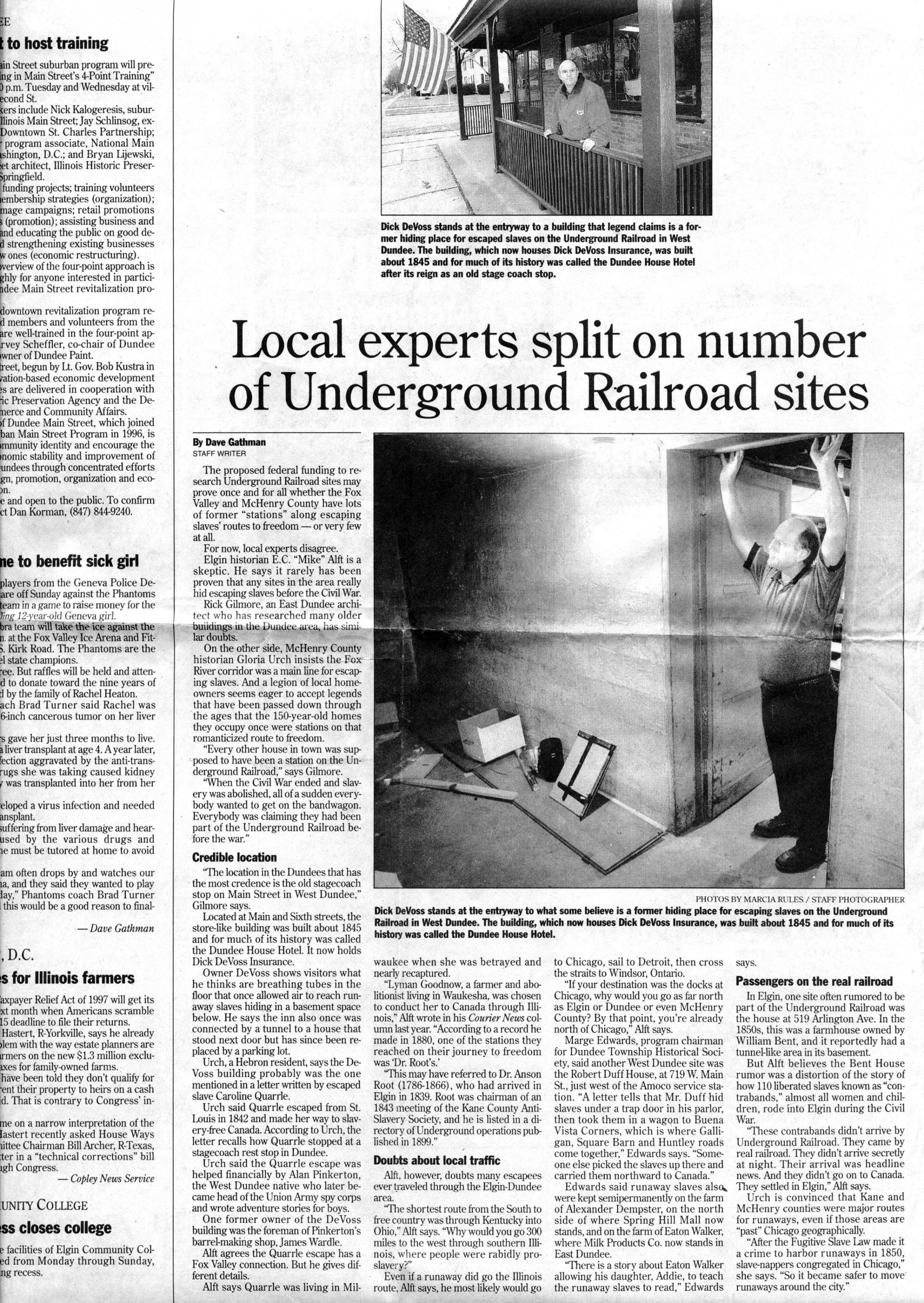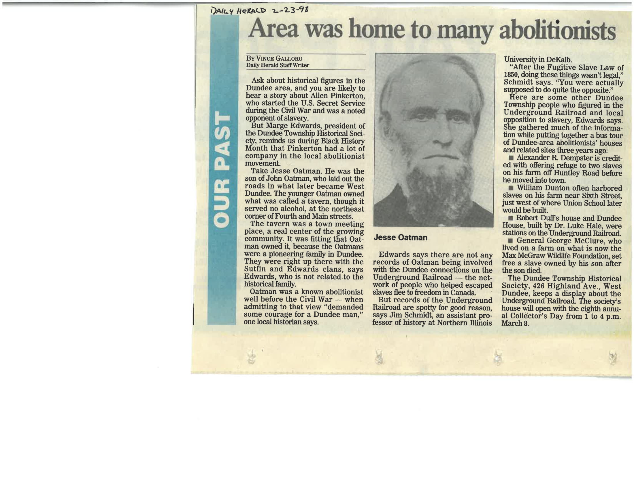 “Area Was Home to Many Abolitionists” article, Daily Herald, February 23, 1998