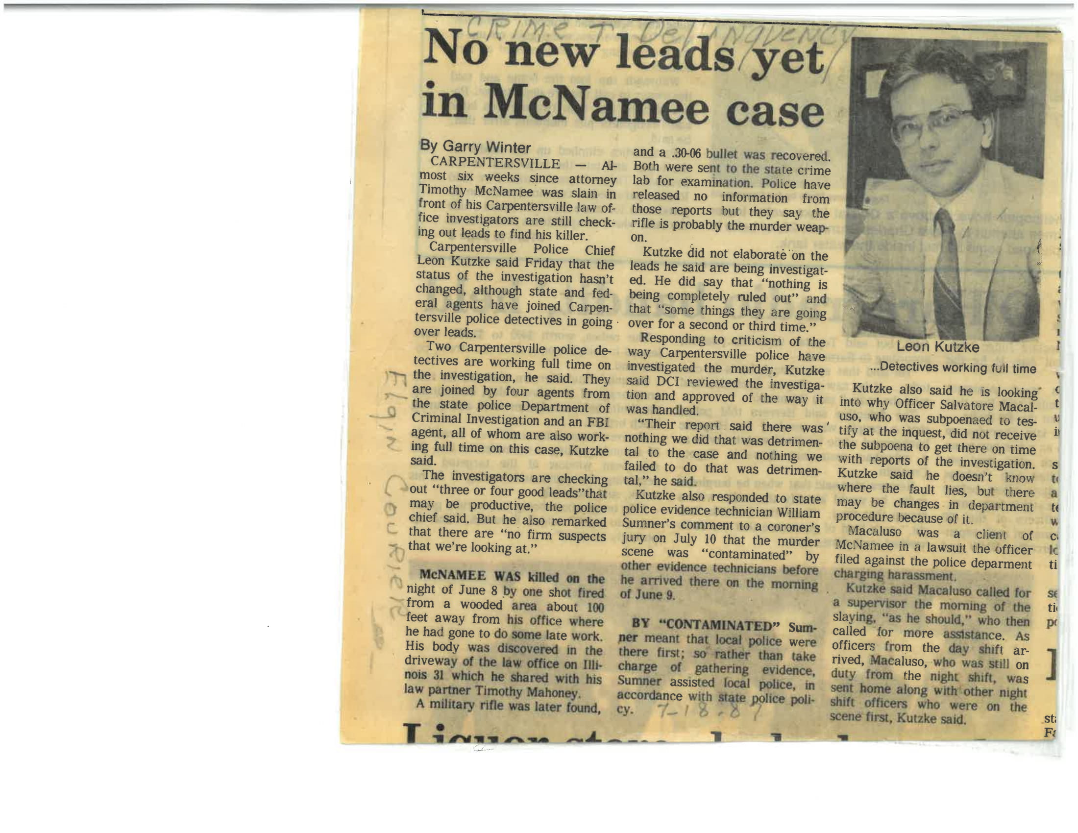 “No New Leads Yet in McNamee Case”, Courier News, July 18, 1987