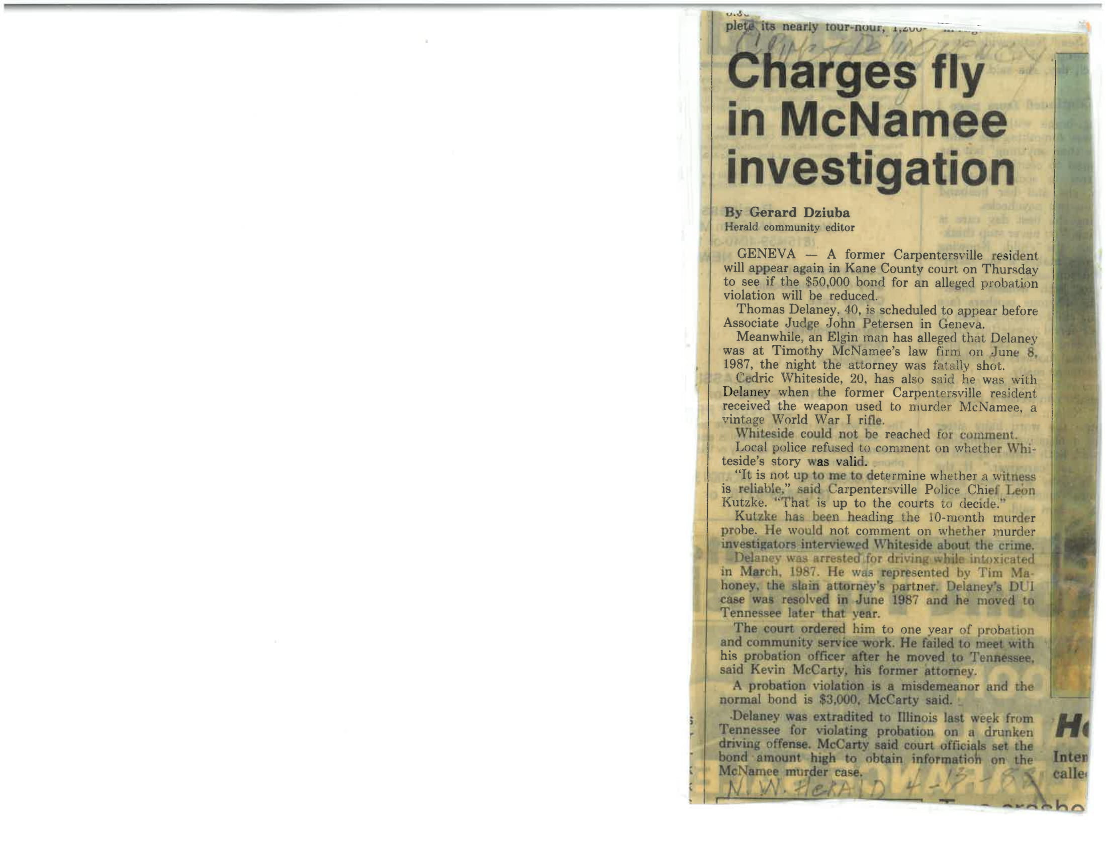 “Charges Fly in McNamee Investigation”, Northwest Herald, April 13, 1988