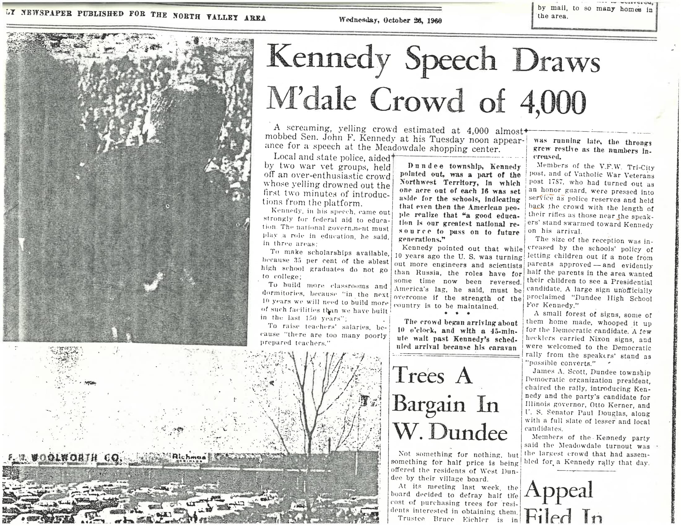 “Kennedy Speech Draws M’dale Crowd of 4,000”, Valley Reporter, October 26, 1960
