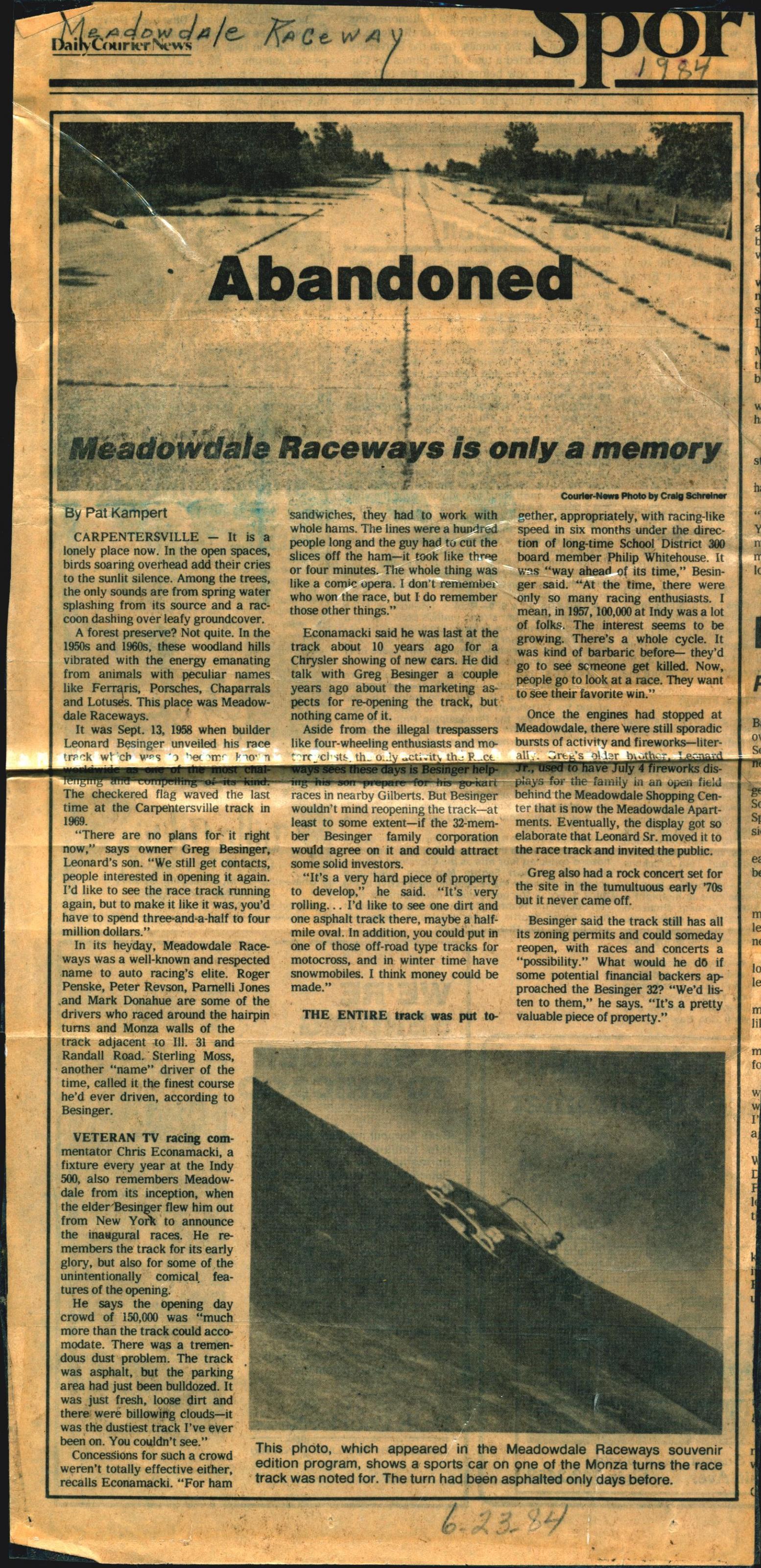 “Meadowdale Raceways is Only a Memory”, Courier News, June 23, 1984