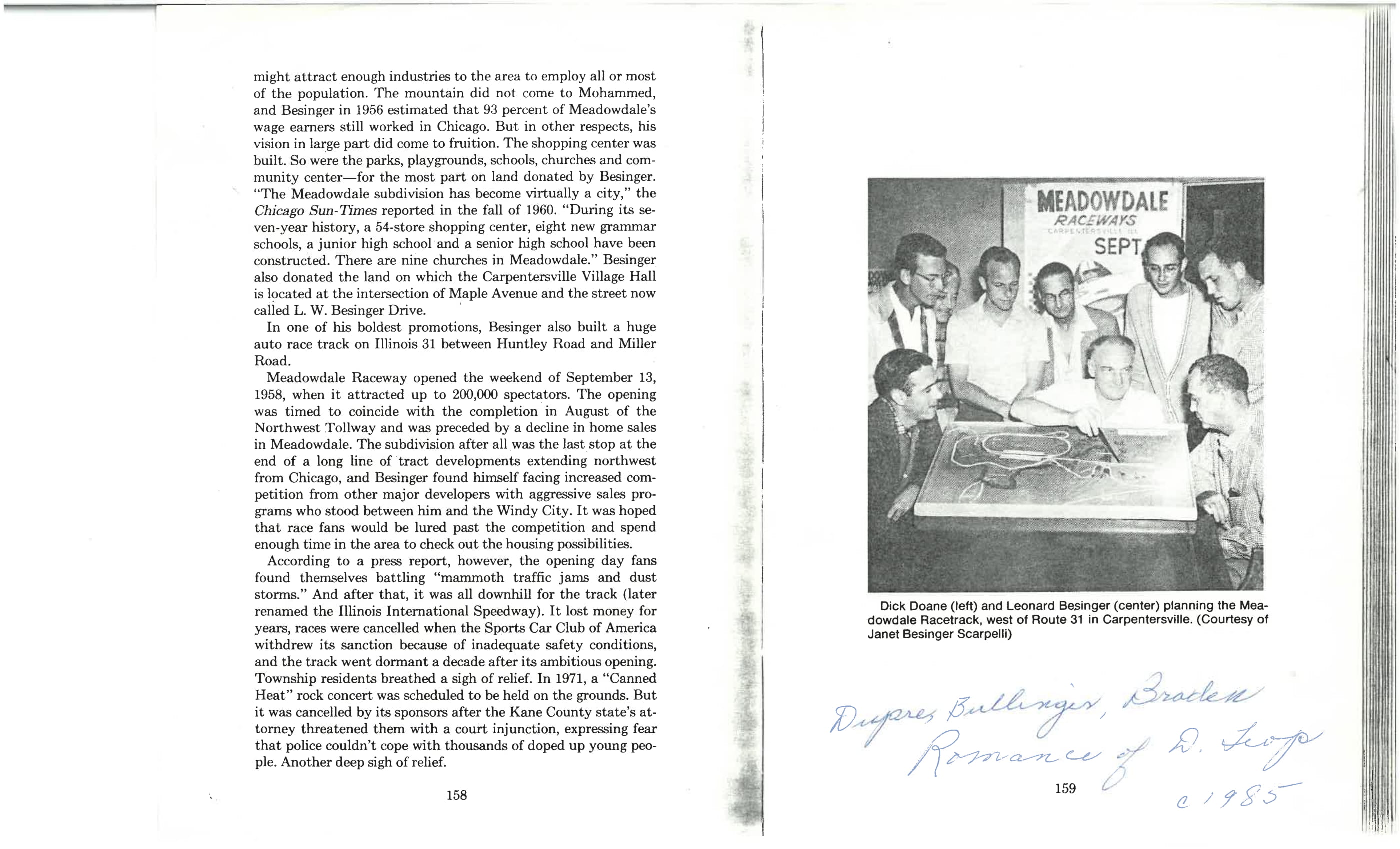 Pages about Meadowdale Raceway from Romance of Dundee Township by Irma Dupre, ©1985