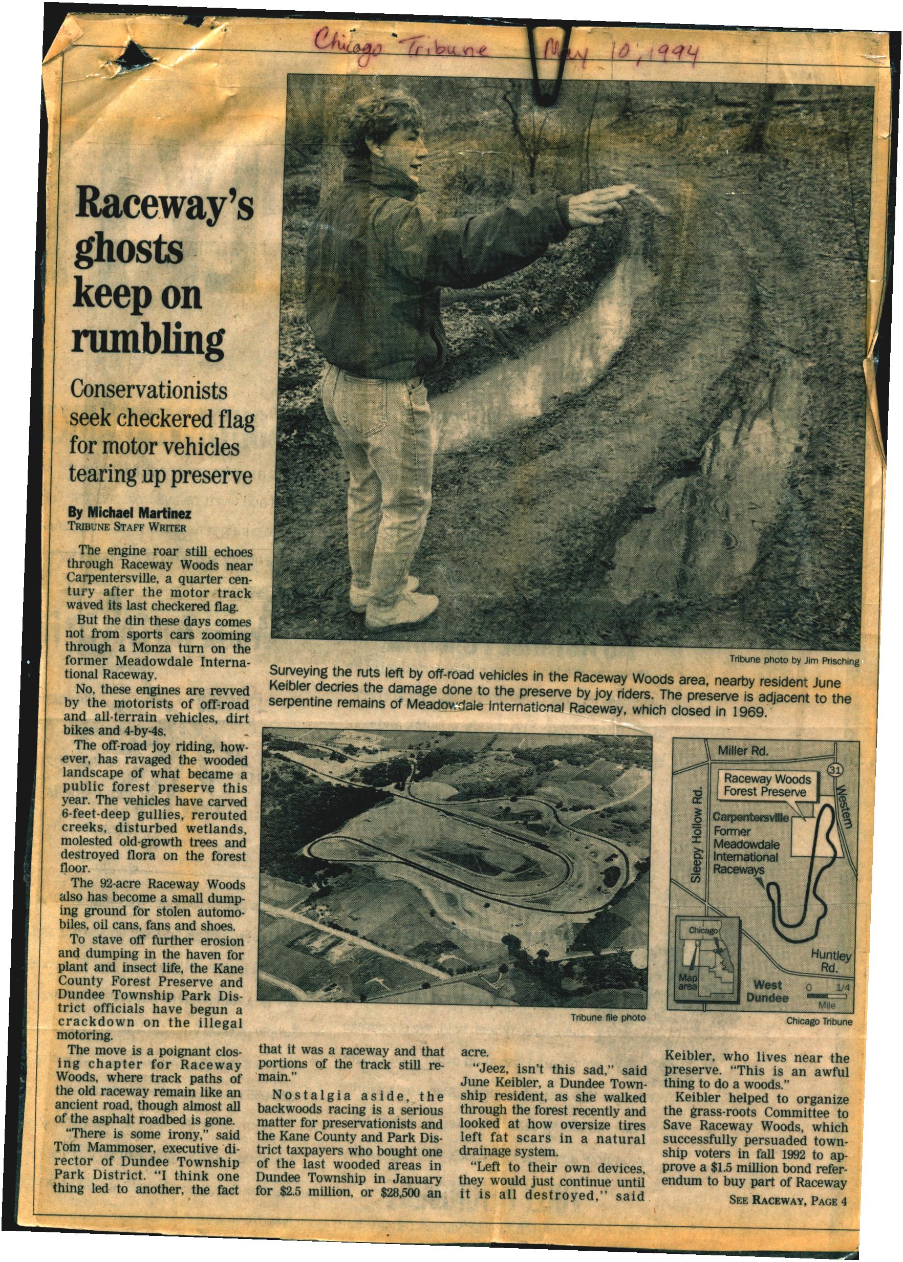 “Raceway’s Ghosts Keep on Rumbling”, Chicago Tribune, May 10, 1994