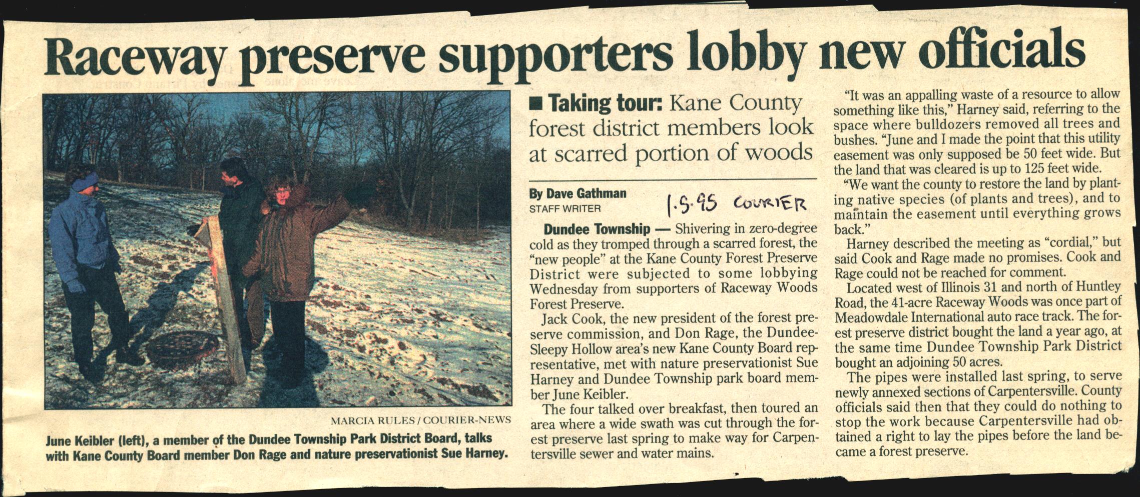 “Raceway Preserve Supporters Lobby New Officials”, January 5, 1995
