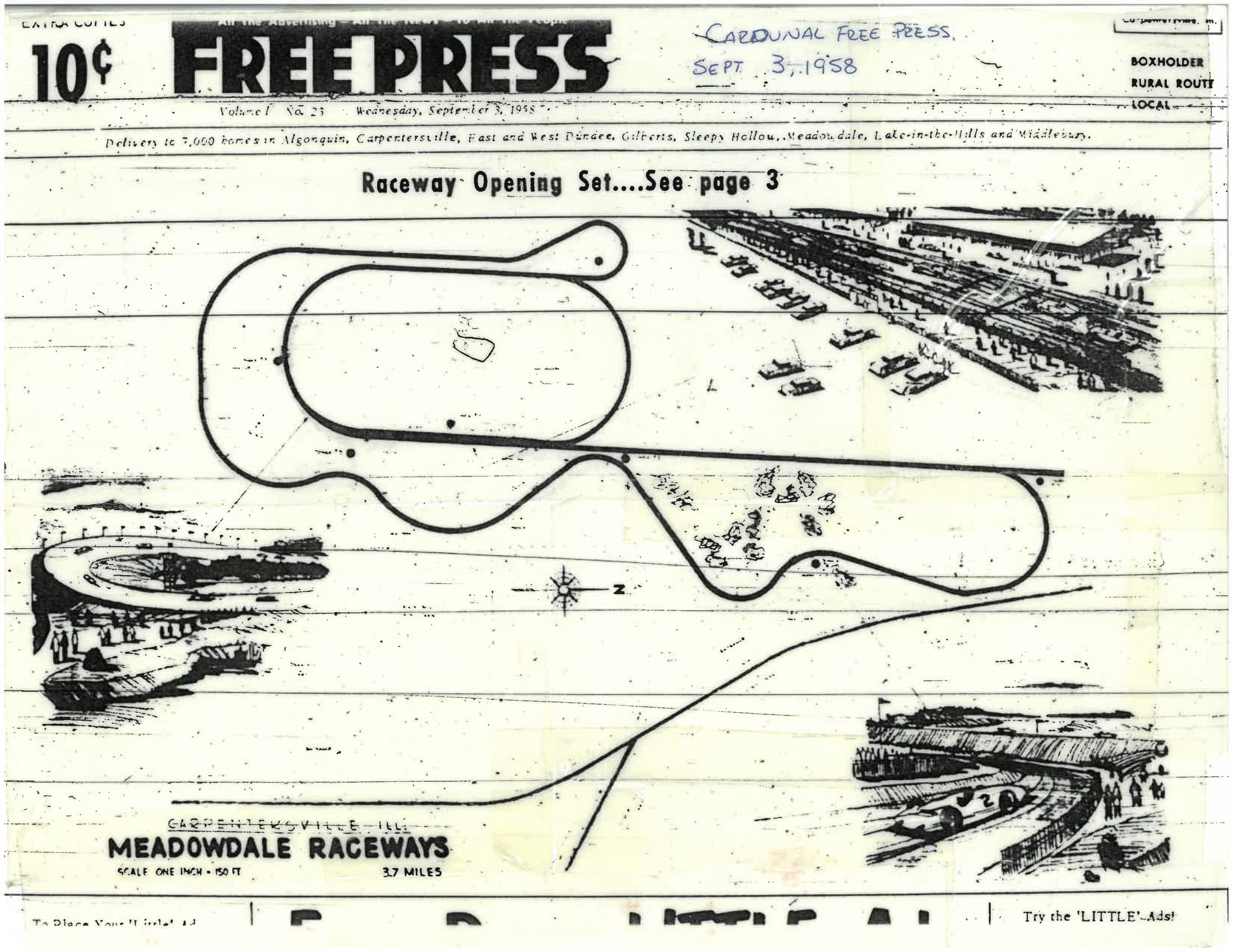 Advertisement for Meadowdale Raceway, Cardunal Free Press, September 3, 1958
