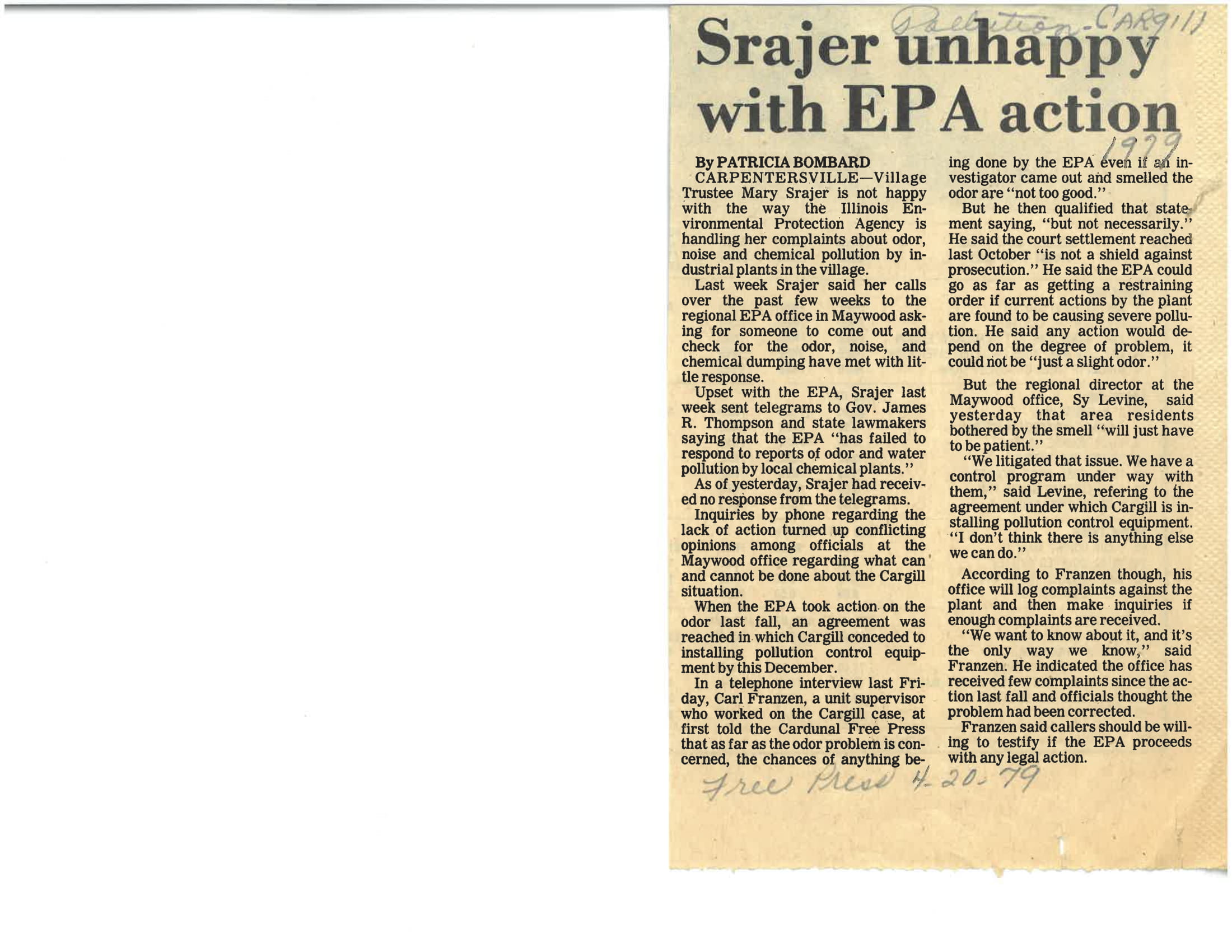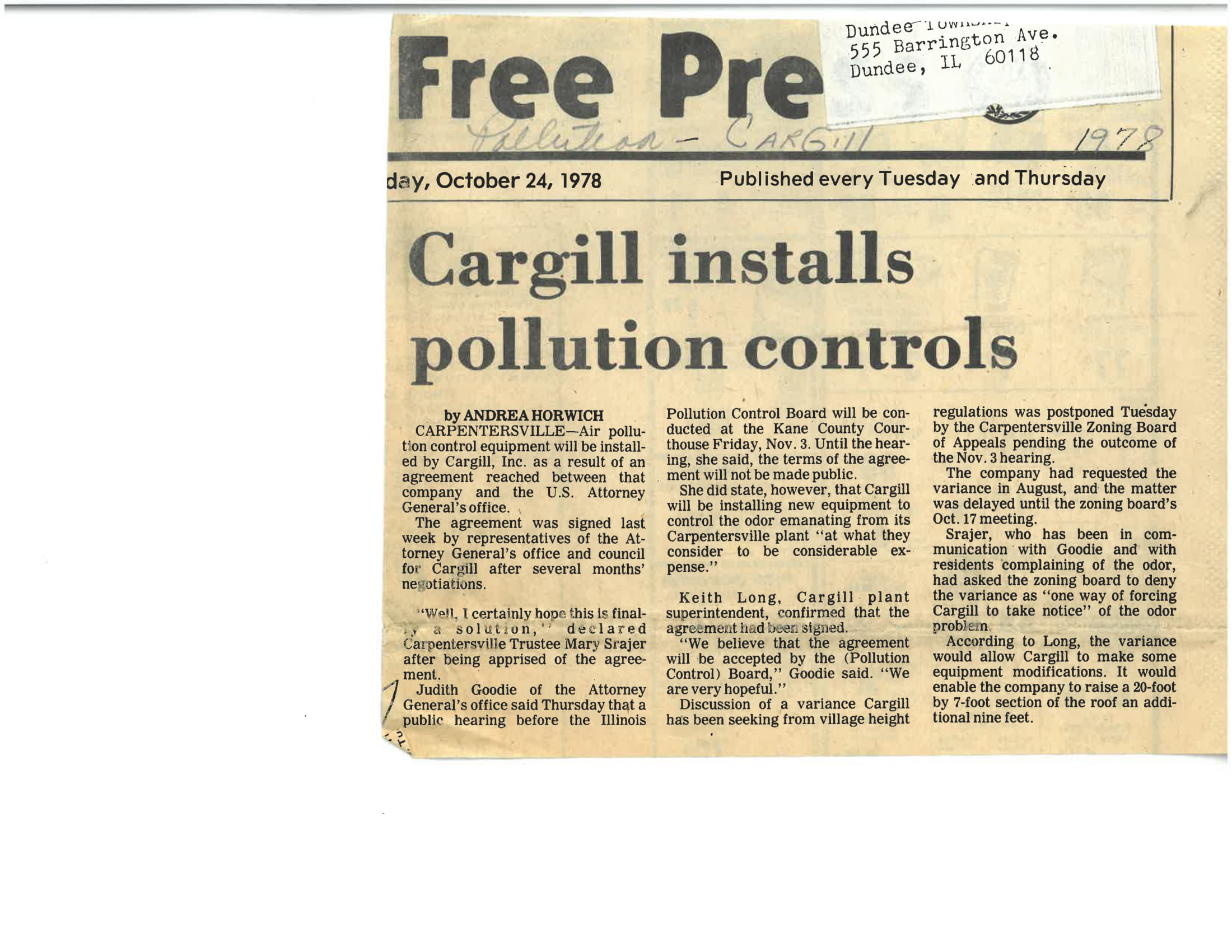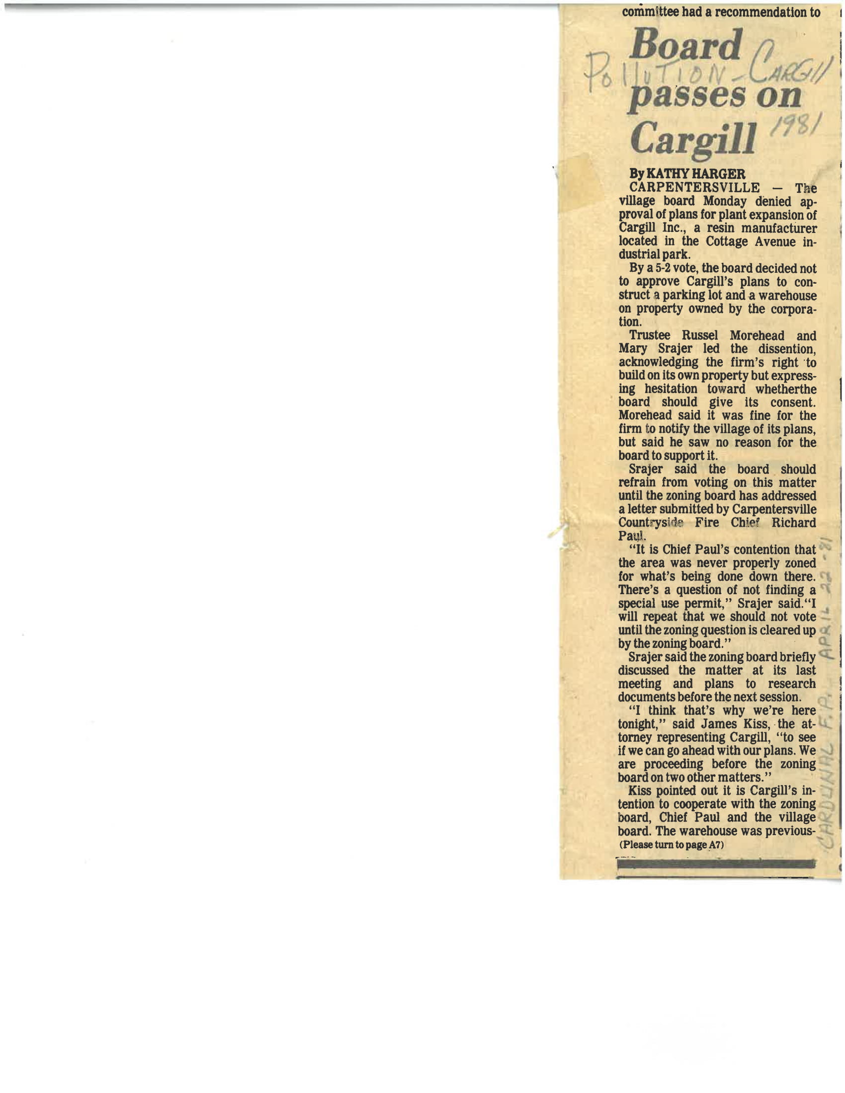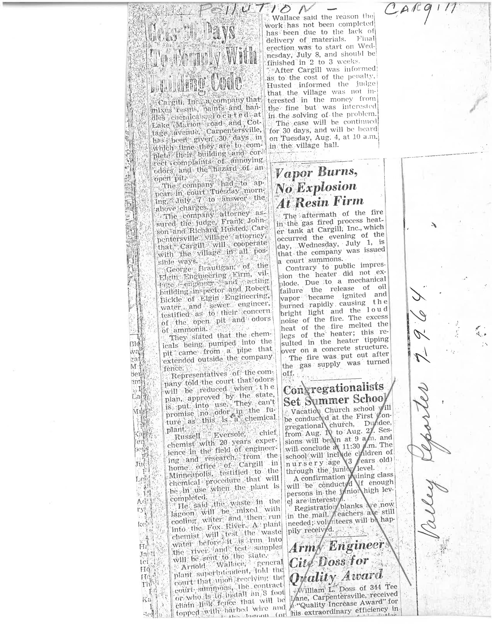 - “C’ville Claims IEPA Inaction in Cargill Case”, Fox Valley Countryside, February 21, 1980
