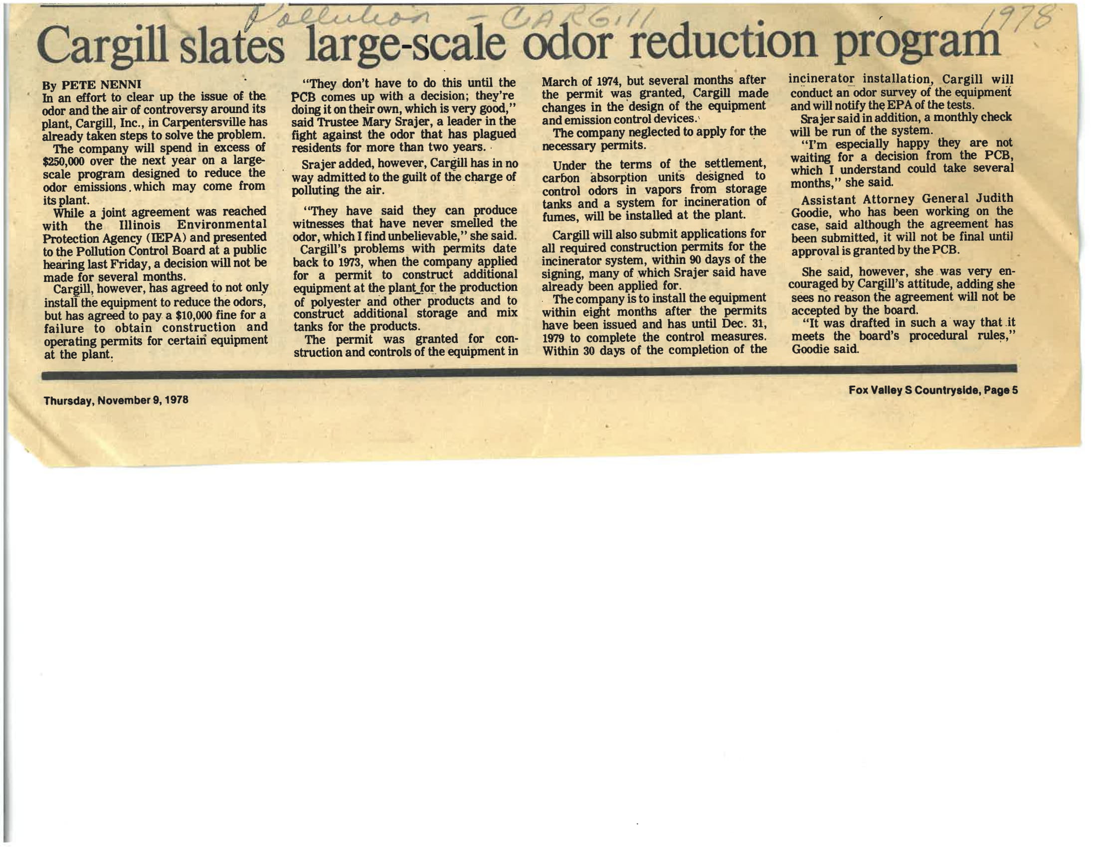 - “Cargill Slates Large-scale Odor Reduction Program”, Fox Valley Countryside, November 9, 1978