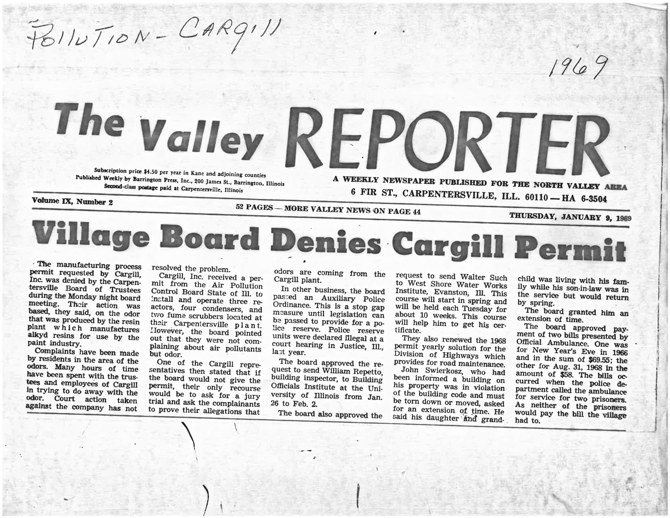 - “Village Board Denies Cargill Permit”, Valley Reporter, January 9, 1969