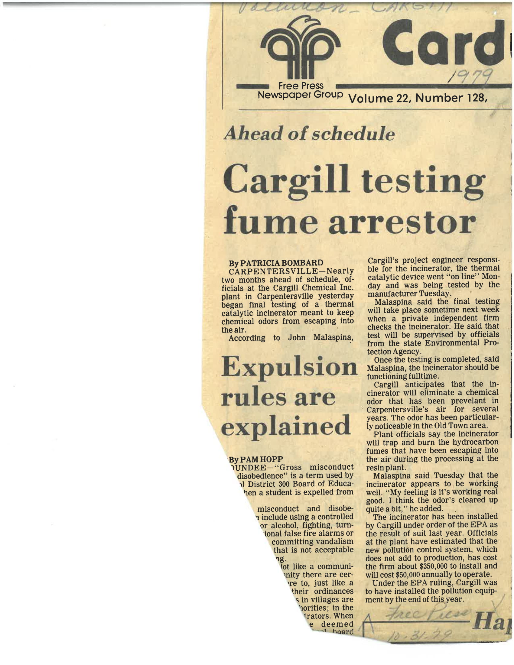- “Cargill May Start Idle Incinerator”, Northwest Herald, July 23, 1987