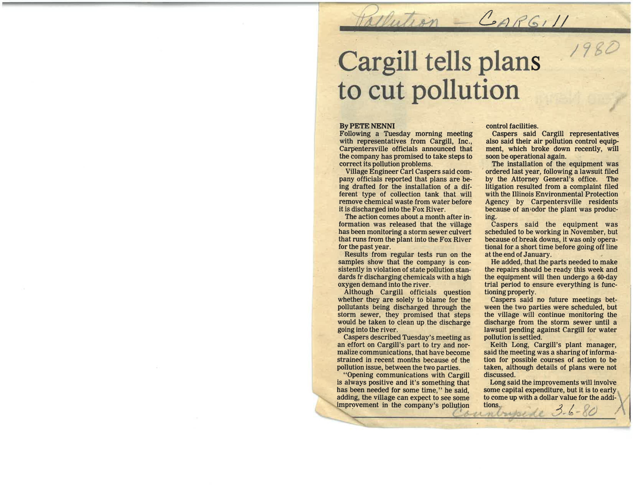 - “Cargill Tells Plans to Cut Pollution”, Fox Valley Countryside, March 6, 1980