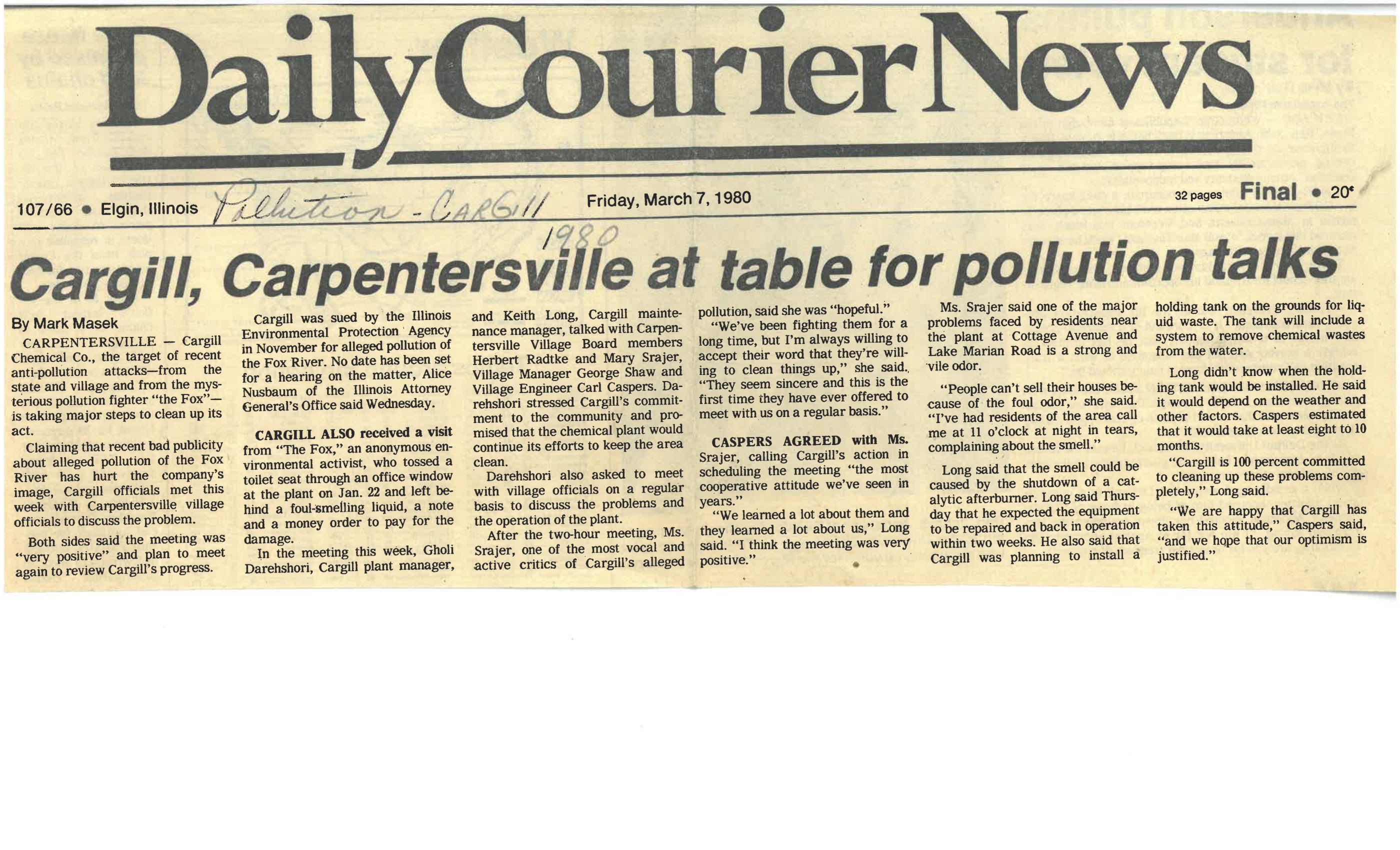- “Cargill, Carpentersville at Table for Pollution Talks”, Courier News, March 7, 1980