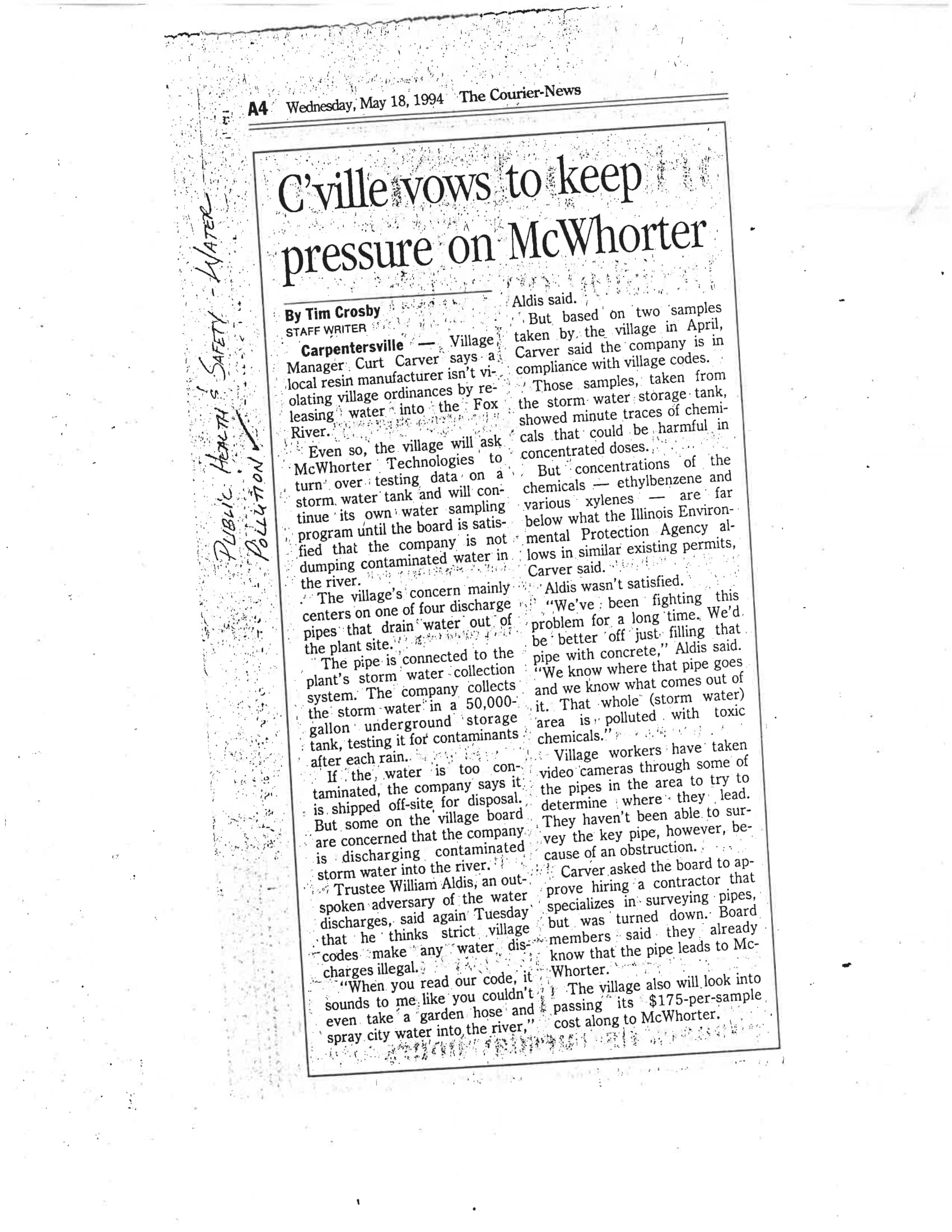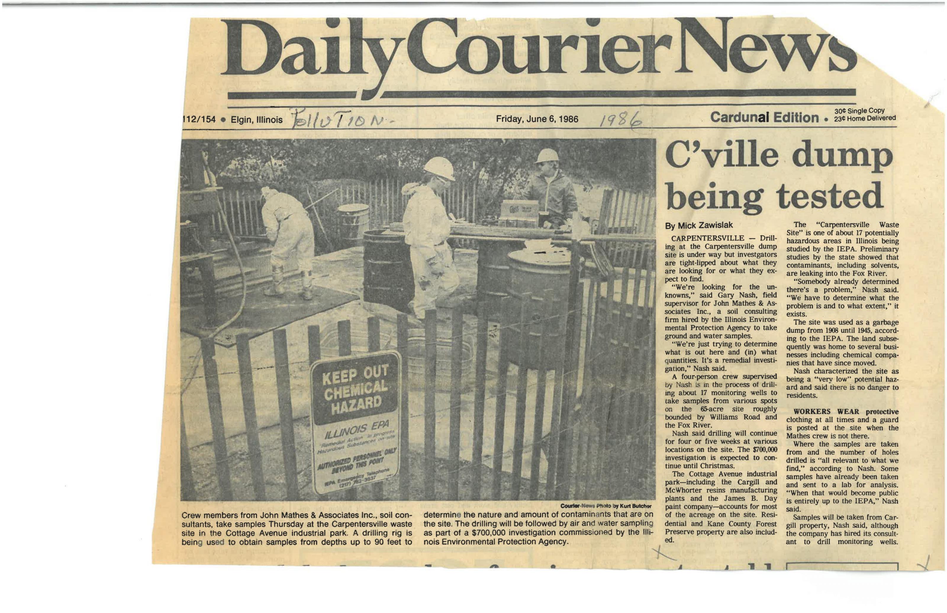 - “Study Finds Chemical Pollution”, Northwest Herald, November 10, 1987