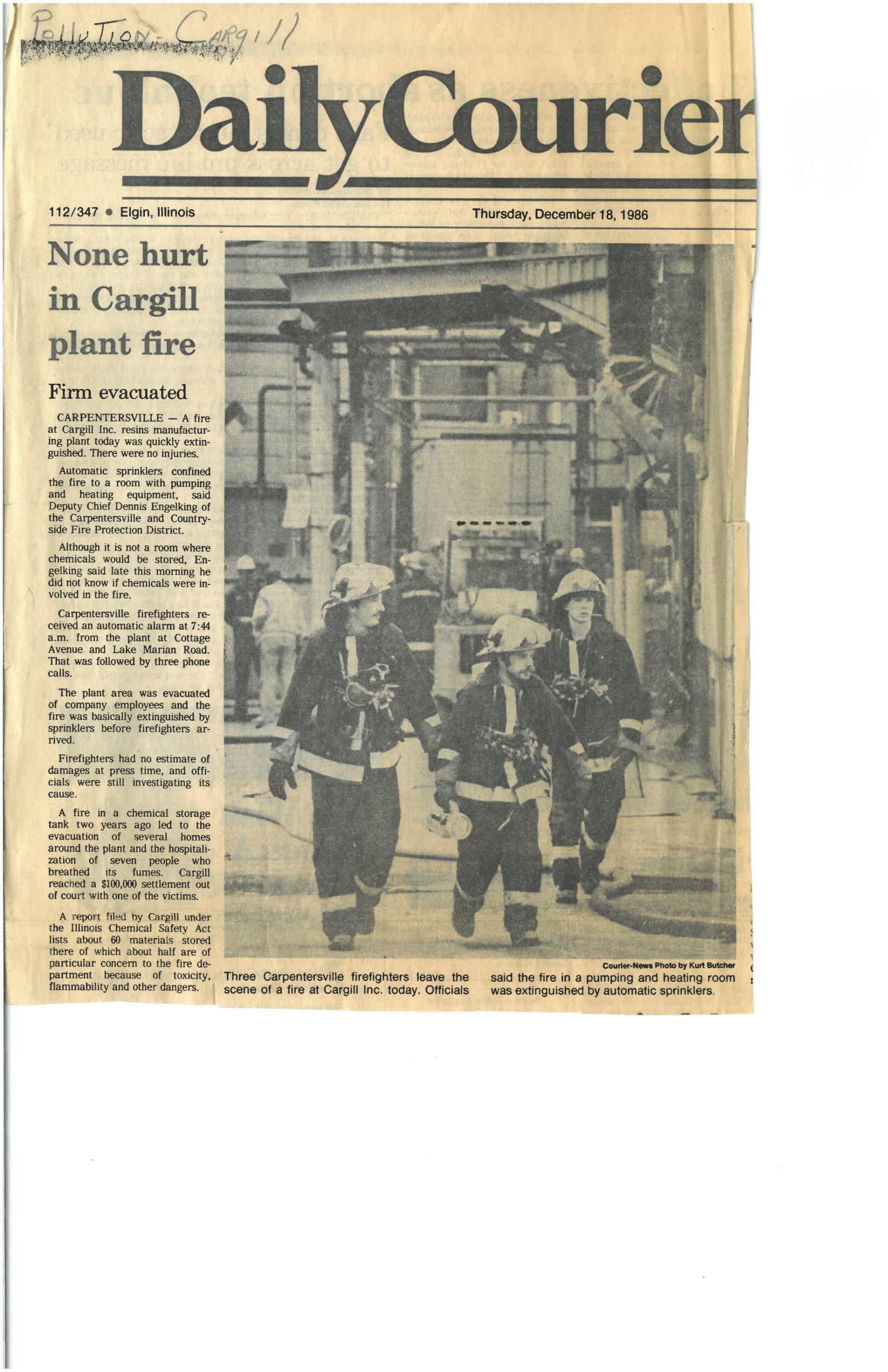 - “None Hurt in Cargill Plant Fire”, Courier News, December 18, 1986