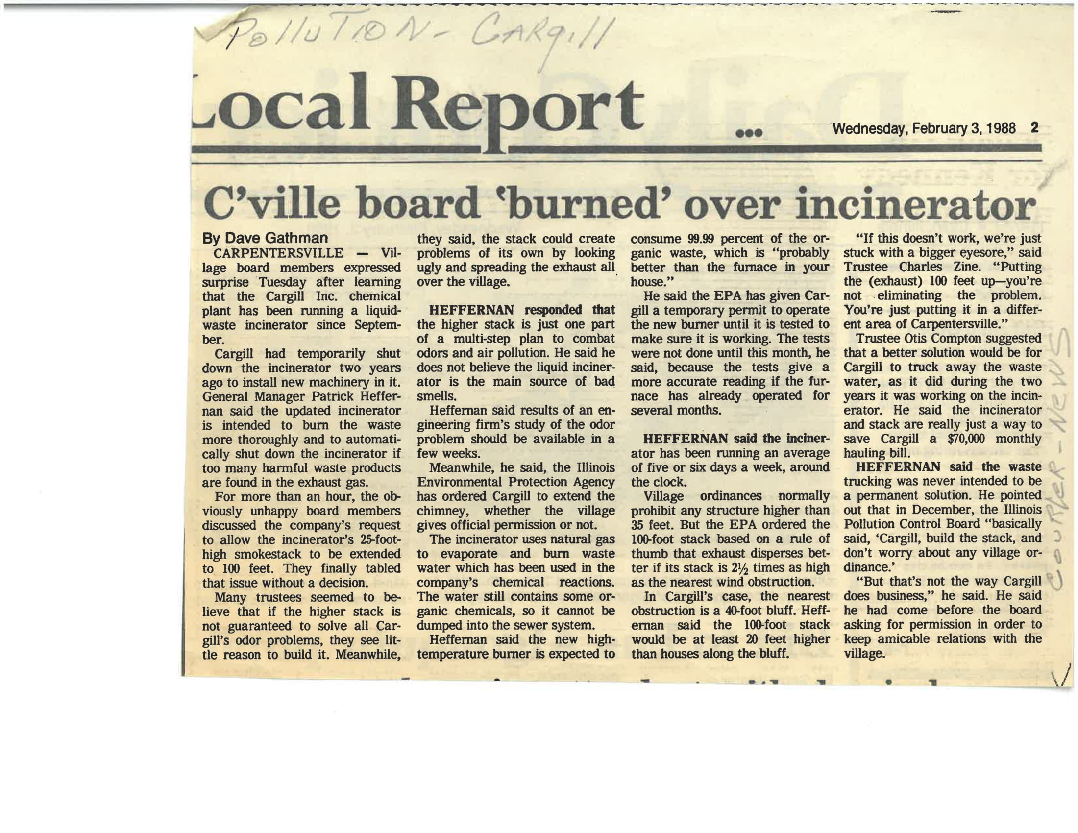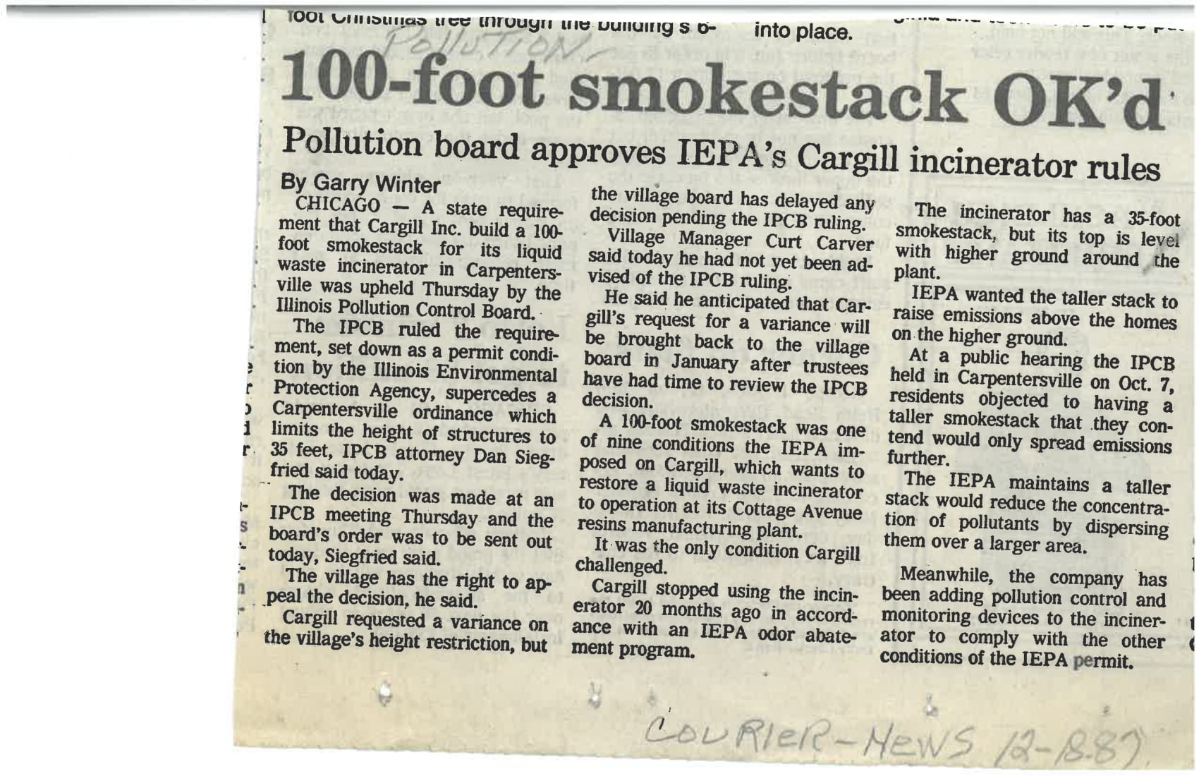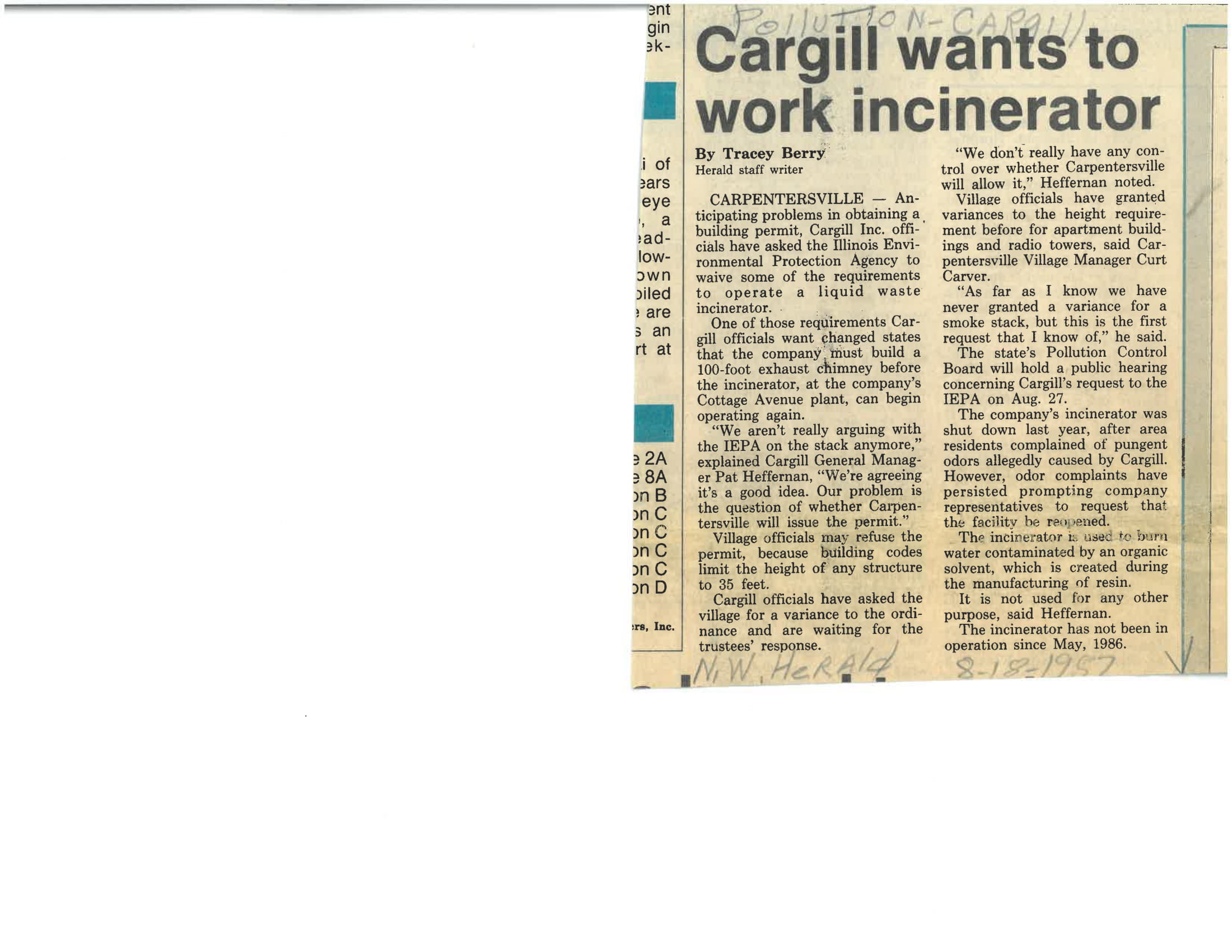 - “Cargill Wants to Work Incinerator”, Northwest Herald, August 18, 1987