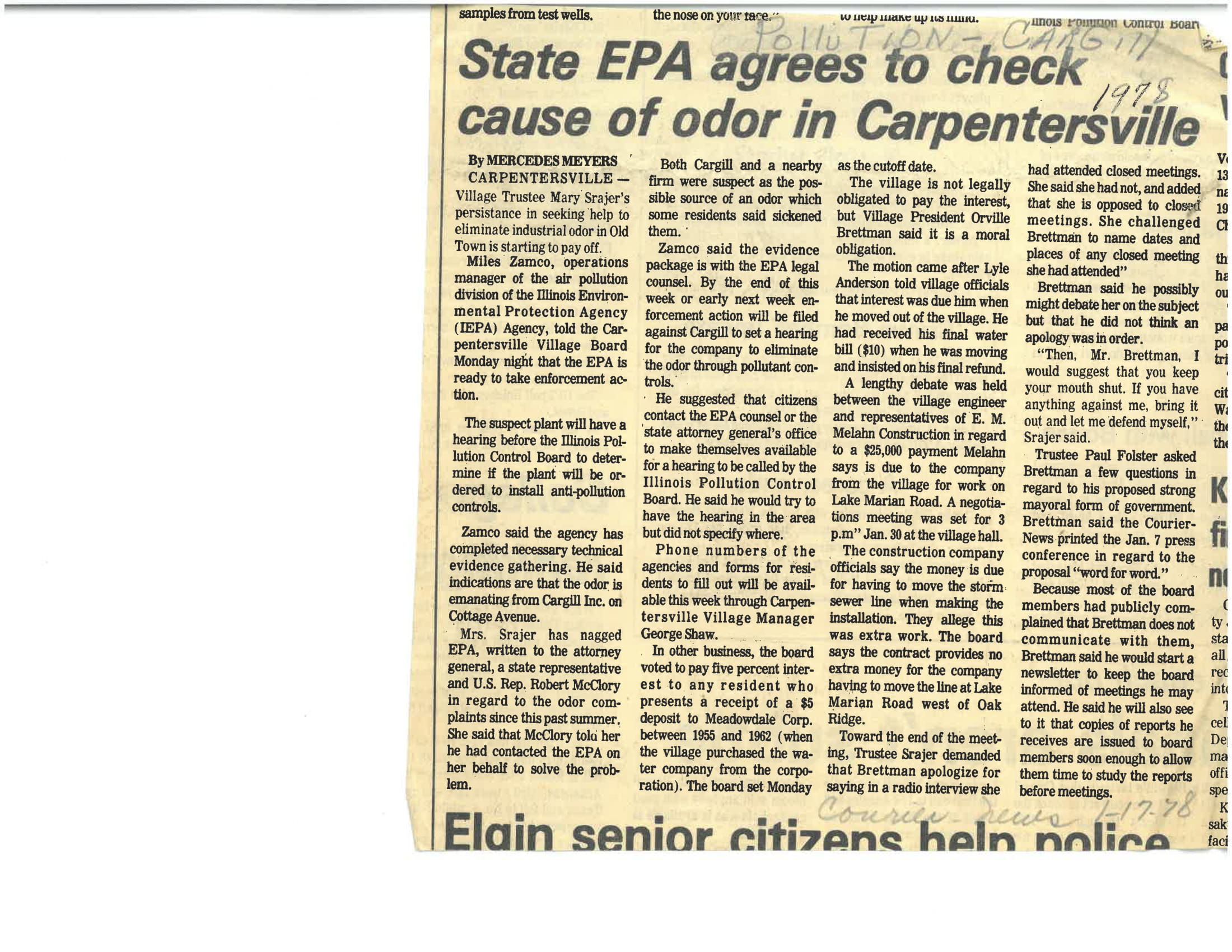 - “State EPA Agrees to Check Case of Odor in Carpentersville”, Courier News, January 17, 1978