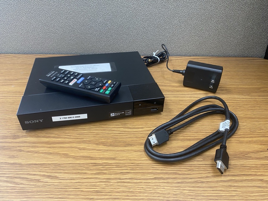 Device you can use to watch Blu-Ray discs and DVDs. Includes the player, remote, cords for power & HDMI, and carrying case.